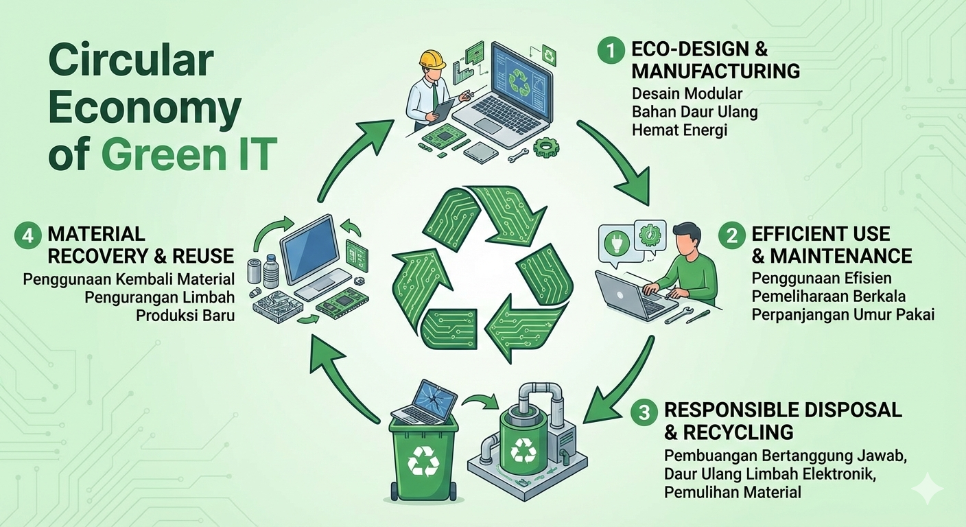 Di era digital yang berkembang pesat, kebutuhan akan infrastruktur teknologi informasi (TI) terus meningkat, yang pada gilirannya mendorong konsumsi energi dan produksi limbah elektronik (e-waste) ke tingkat yang mengkhawatirkan. Sustainable IT atau Teknologi Hijau (Green IT) muncul sebagai respons terhadap tantangan lingkungan ini. Konsep ini mencakup praktik perancangan, pembuatan, penggunaan, dan pembuangan perangkat keras dan perangkat lunak komputer dengan dampak lingkungan yang minimal. Tujuan utamanya adalah untuk mencapai efisiensi energi, mengurangi emisi karbon, dan mempromosikan penggunaan sumber daya yang bertanggung jawab di seluruh siklus hidup produk TI. Dengan mengadopsi prinsip-prinsip ini, organisasi tidak hanya dapat mengurangi jejak ekologis mereka tetapi juga mencapai penghematan biaya operasional yang signifikan.