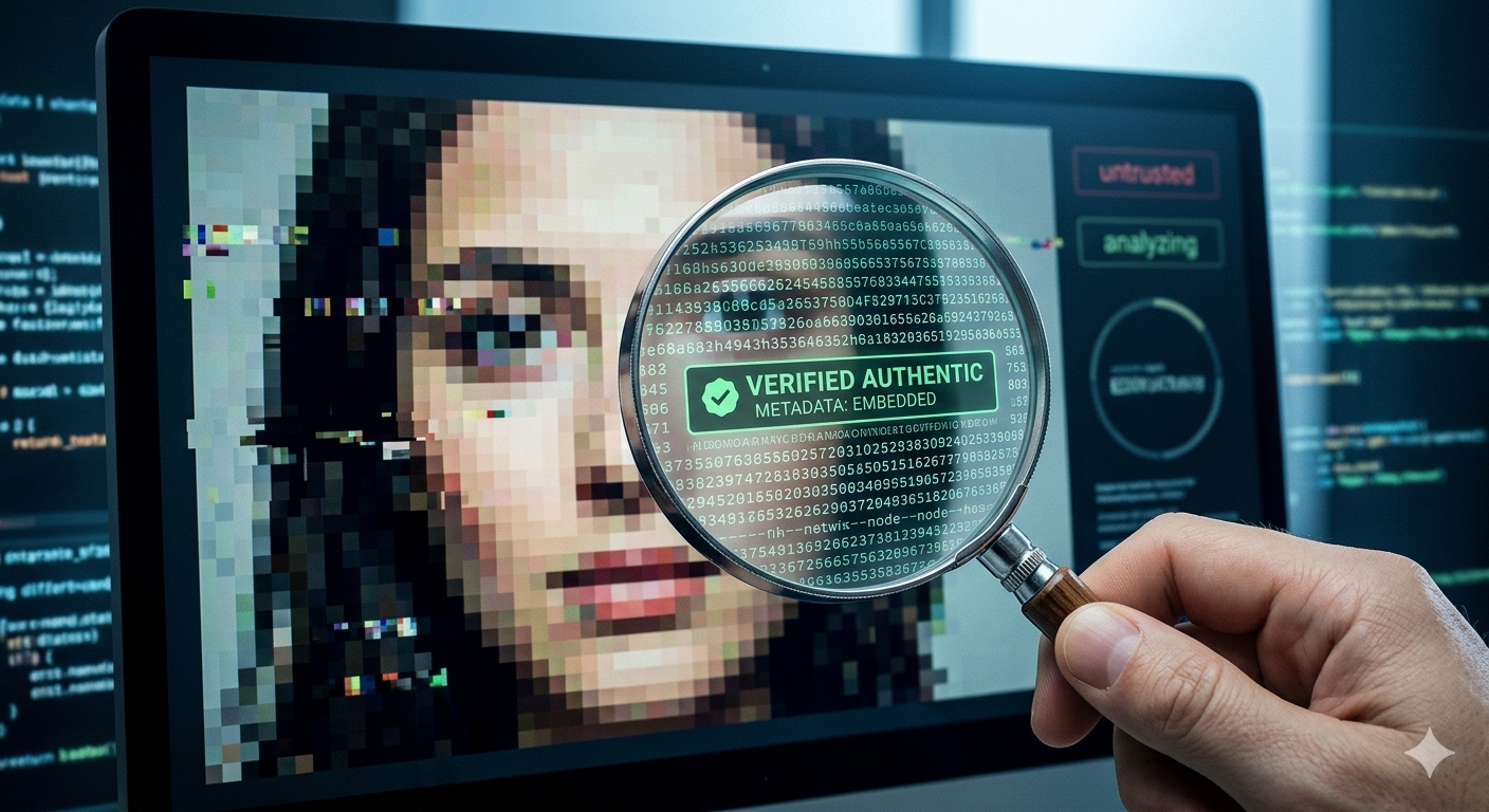 Dengan kualitas media buatan AI (deepfakes) yang sudah tak bisa dibedakan dengan realitas, keaslian informasi menjadi krisis global. Solusi yang mendominasi di tahun 2026 adalah Digital Provenance, sebuah standar arsitektur yang melacak asal-usul (silsilah) setiap aset digital mulai dari titik penciptaannya hingga dipublikasikan, memisahkan fakta dari fiksi.